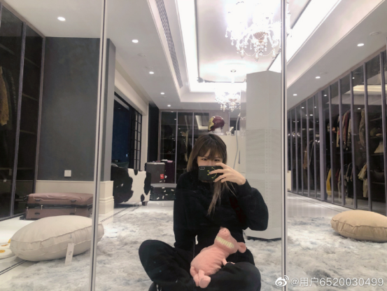 这是她的新衣帽间,从镜子里可以看出整个空间非常宽敞。