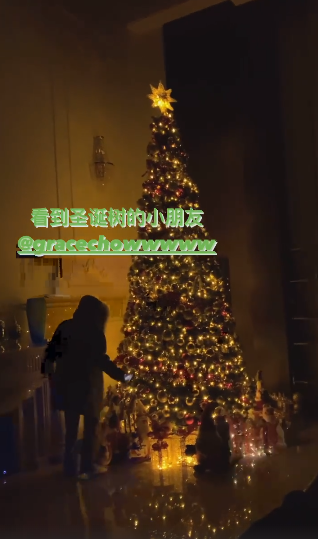 这圣诞树就更夸张了,目测比两个周扬青还要高,肯定超过了3米,那么问题来了,求周扬青新家的客厅到底有多高?