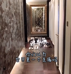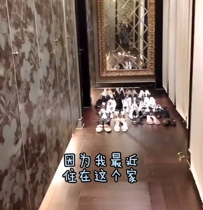 这个被网友调侃装修得很像KTV厕所的走廊,其实是她专属的衣帽间。