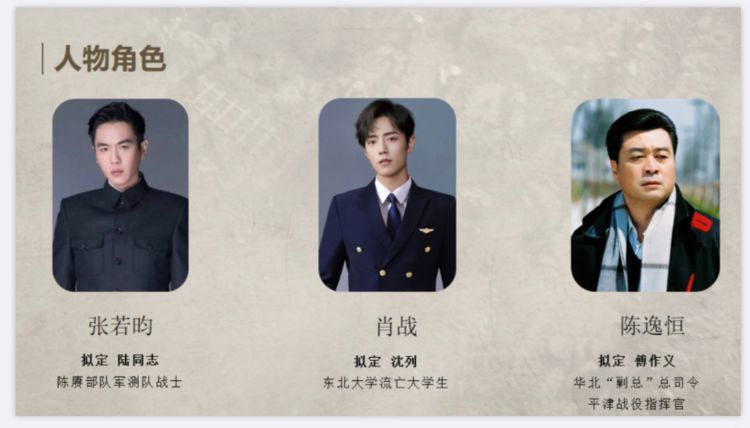 而在知情人发布的参演列表中,我们也看到肖战和张若昀也在剧中参演个体角色,其中肖战在这一部剧里面饰演的是一个东北流亡大学生沈列,而张若昀的表演也是演绎一个战士陆同志,两个角色明显差别,但都只是拟定而已;如若两人真的能一路出现,也是继《庆余年》后再一次合作,自然也是备受期待。
