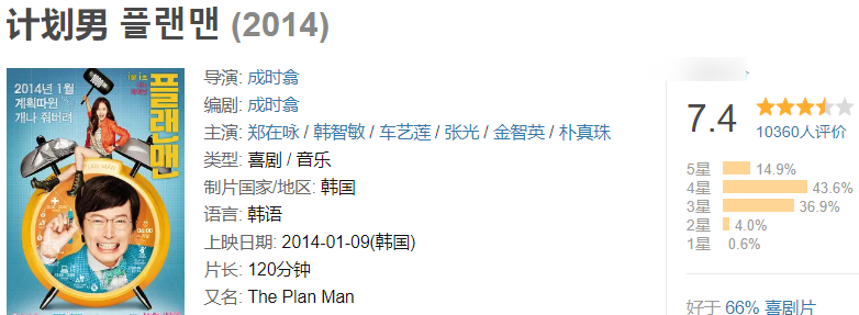 《计划男》就是一部非常治愈的喜剧作品,在上万人的打分下,斩获了7.4的评分,但是仅有14.9%的观众给出了五星评分,这意味着《计划男》距离神作还有差距。