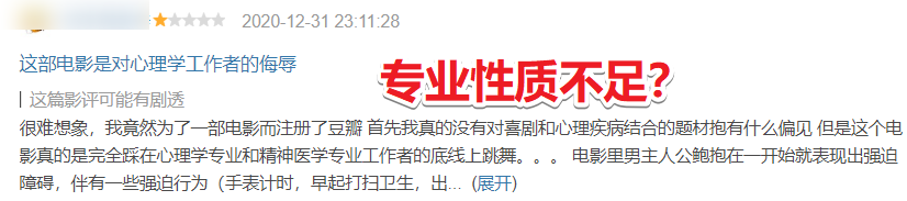 第二个是什么情况呢?那就是专业性质不及,比如说一名心理学专业的学生就在看了电影后,直接发文吐槽了,表示这部电影里面是在挑战专业工作者的底线。