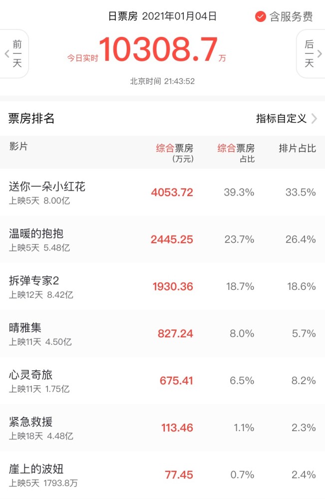 果然,到了1月4号,郭敬明的《晴雅集》开始出状况了。虽然1月4号《晴雅集》并没有被下架,但是已经跟下架没啥区别了,因为该片的日排片率已经降低到了5.7%,单日票房仅剩827万,跟前一天差了一半。