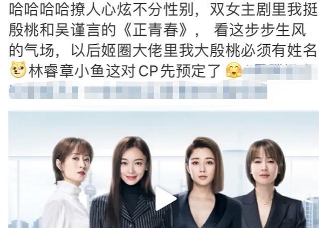 虽然有部分网友唱衰这部殷桃和吴谨言的《正青春》,但是这部剧或许还是挺值得一看的,作为比较靠前播出的女性职场剧,没有男演员“插足”的演剧形式还是值得期待。