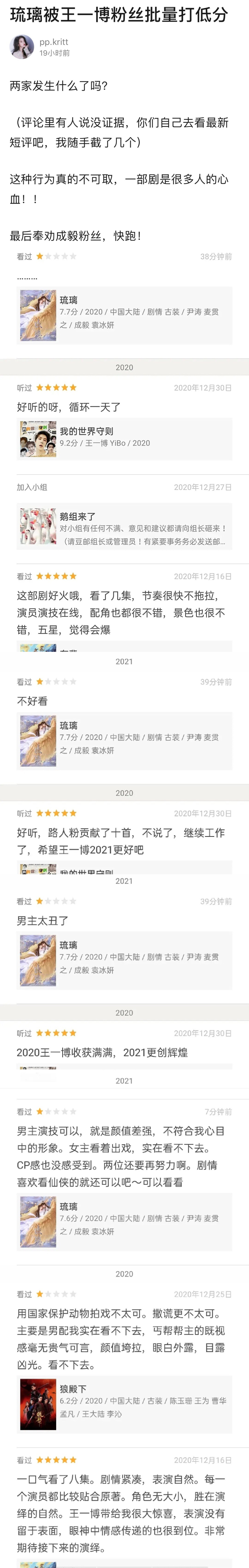 这种恶意打低分的行为完全不成取,这和恶意养号并没有甚么区别,王一博粉丝因为恶意养号被曝光,现在依旧还在赤裸裸的使用类似的手段。一部剧的好坏大家能够看得清楚,不管如何只是希望大家不要同流合污,坚守自我!