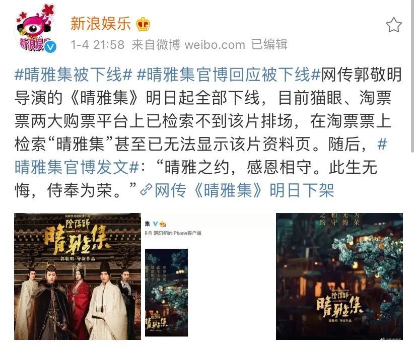 其实对于电影的下线原因,不止是《晴雅集》,每一部电影被下线,或者不行上线,至少要给人一个信服的理由,或者问题在哪儿。