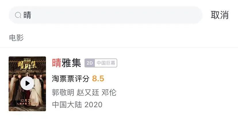 以后再搜索《晴雅集》的电影票相关,已经没有了购票窗口。