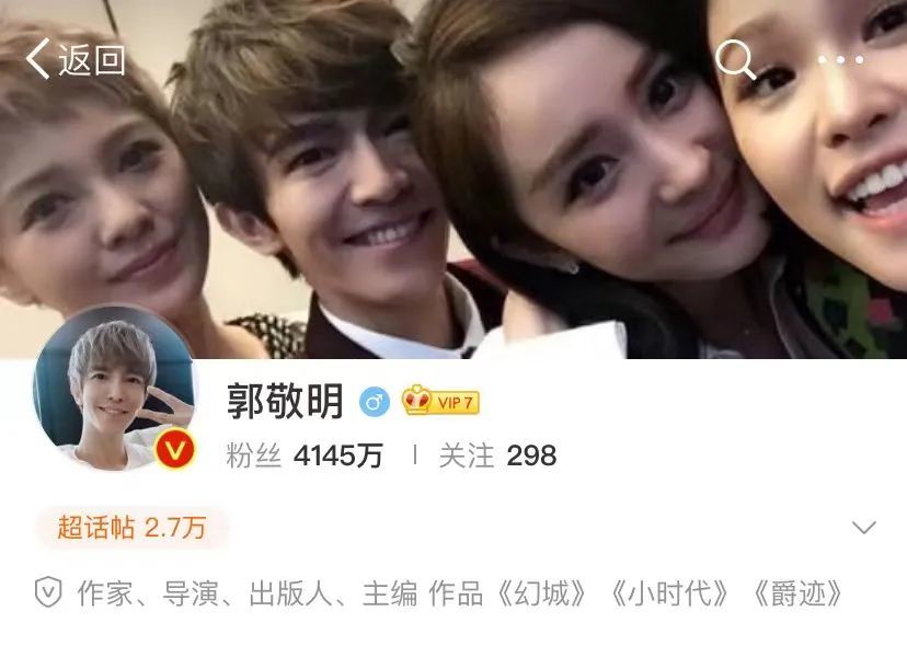 郭敬明是个成功的商人。《小时代》曾经创下了国内电影市场2D电影的首日票房记录。现在他的微博封面还留着小时代的照片,那对他来说绝对是最梦幻最难忘记的时光。