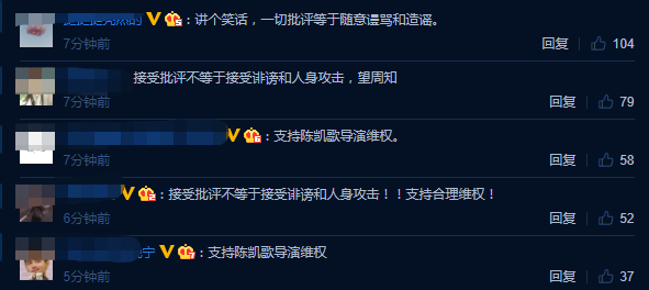 此举也得到了网友们的纷纷支持,对于作品的批评陈凯歌导演可以虚心接受,可是涉及到随意谩骂和造谣加上人身攻击,自然是忍无可忍。