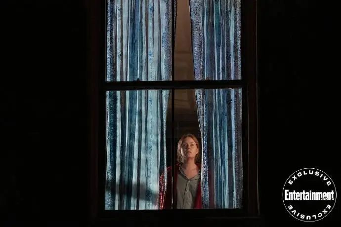 时隔1年多,高清新剧照发布,女主角艾米·亚当斯透过蓝色窗帘留出的缝,望向窗外。
