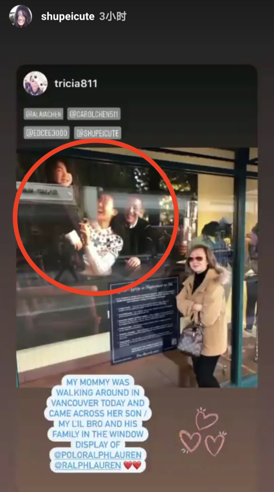 不光是洛杉矶,在温哥华商场的橱窗上也能看到这一家三口。此前,陈冠希的妈妈就在逛街的时候偶遇,并且和儿子、儿媳、孙女合影,来了个另类的祖孙三代同框。因为新冠,一家人无法团圆,只能以这样的方式团聚。此刻短暂的分离是为了将来能更好地在一路,这段时间保持身体健康才是硬道理。