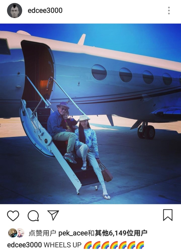 1月9日,陈冠希在IG上分享了一张全家福,并附文:Wheels up。