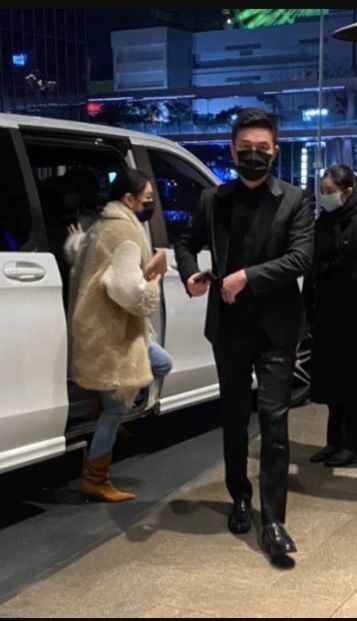 小S和老公许雅钧乘奔驰商旅车抵达,便装现身,许雅钧戴黑色口罩全黑打扮率先下车,小S绑小马尾穿毛外套跟在后头,小S最近参加年尾聚会的打扮都是牛仔裤加便装,非常平易近民。