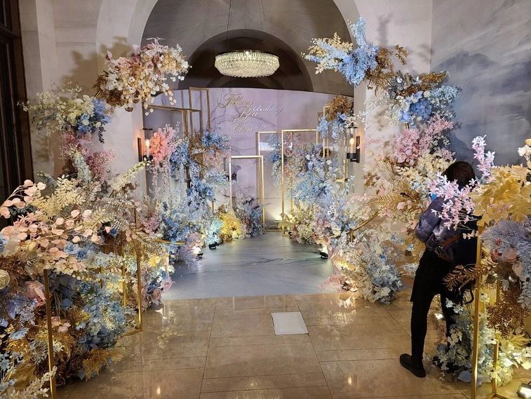 据到现场的媒体友人先容,当晚会场布置也极尽华丽,以粉色、粉蓝与紫色为主色调,一出电梯映入眼帘的是满满的缤纷花卉,还有粉红及粉蓝色的气球装饰,打造犹如梦幻花园。
