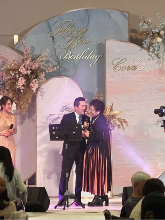 陈怡蓉和医美CEO老公薛博仁也去祝寿,同行的还有蒲月天冠佑的老婆王行芝,刚好当晚蒲月天在桃园开唱,她代表蒲月天,应该是不敢错过向家大宴,可见向家在台湾的影响力。