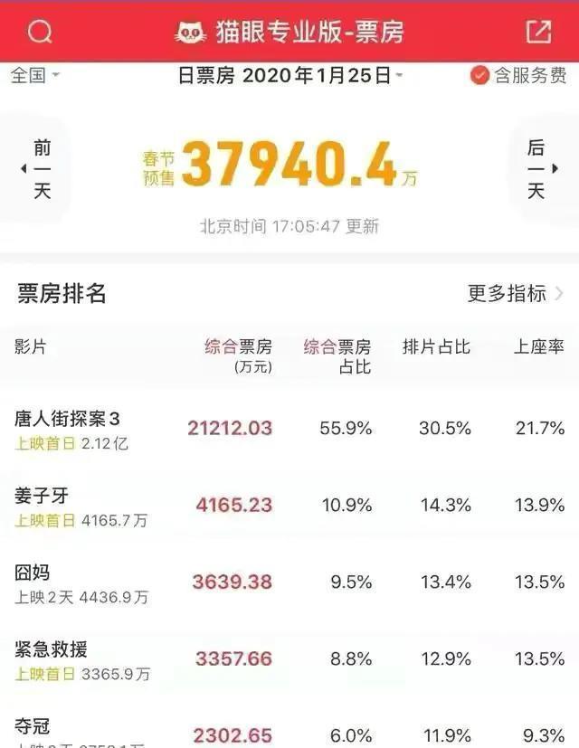 作为2020年贺岁档当之无愧的老大,在预售时,《唐探3》的预售票房可谓一骑绝尘,单日预售票房突破2亿,超过其他所有电影的总和,一家独大,呈碾压态势,这给了陈思诚无限的信心。