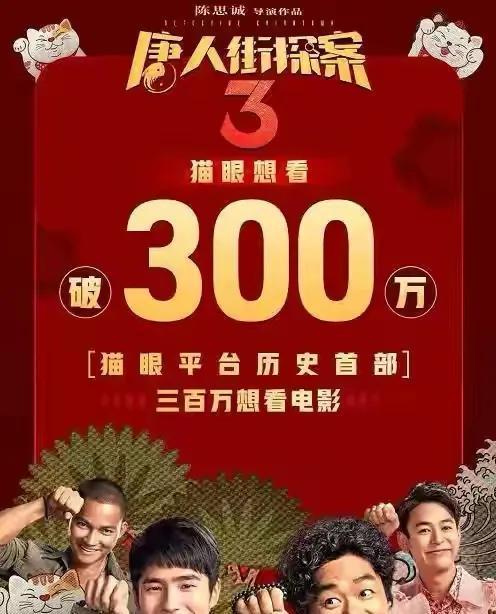 而网上不竭曝出的信息也是逐渐坚定了陈思诚的信心,《唐人街探案3》成为猫眼平台历史首部突破300万人想看的电影,创造了新的历史。