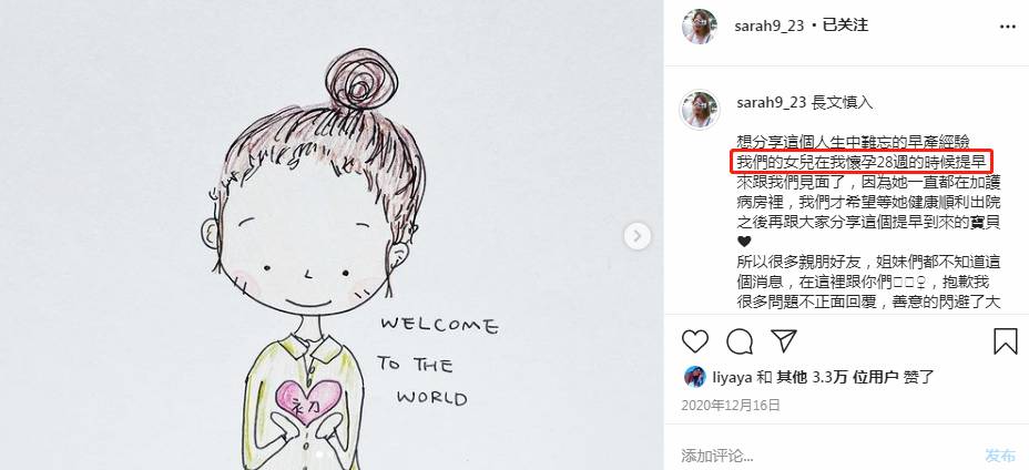 在12月16日时,王棠云发布长文首次曝光了女儿出生的过程。她称女儿是在自己怀孕28周时提前出生的,看到这么个数字,即便现在妹妹已经完全健康,但依旧让人感到揪心。