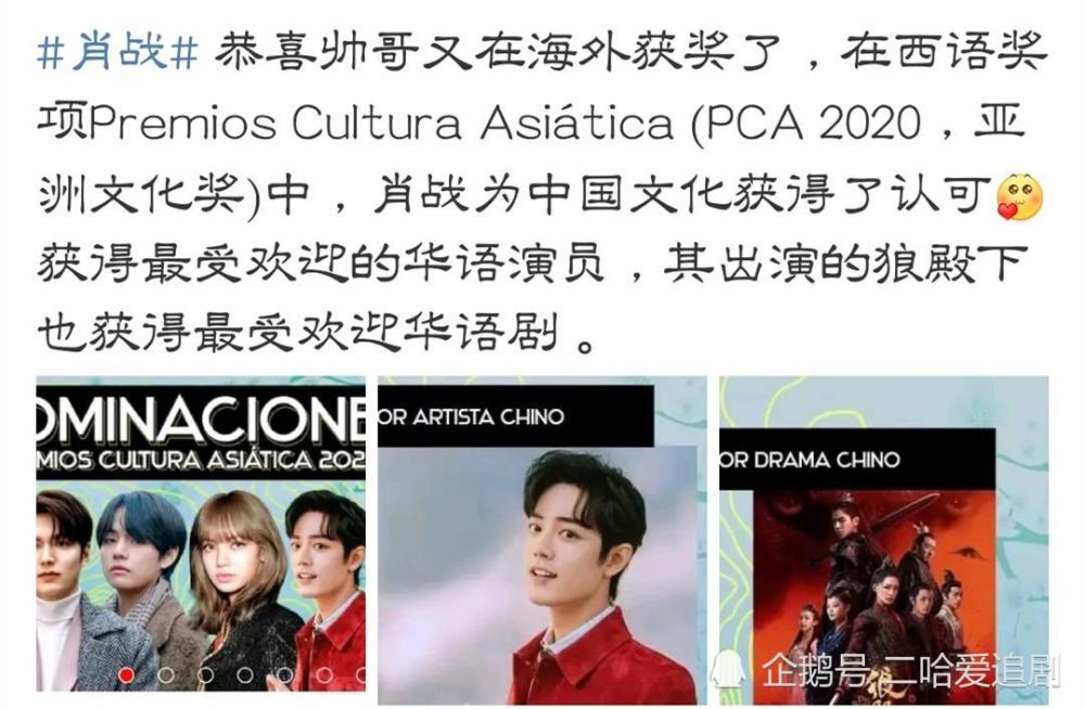 这并不是肖战第一次获得国际认可,之前他凭借着《狼殿下》这部剧获得了“PCA2020亚洲文化奖”年度“最受欢迎的华语演员”,该剧也获得了“年度最受欢迎的华语剧”。以后还在马来西亚获得“最佳人气奖”奖项的荣誉。这么多荣誉可以说在圈内是属于“独一份”了,这也说明他并不是“黑红”。
