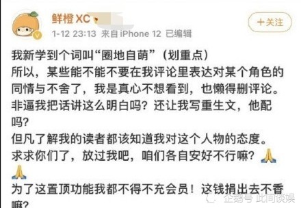 作者终于在今日发文回应称自己不想再看到读者对傅慎行的同情,言辞里尽是对傅慎行的厌恶,表示自己根本不成能为傅慎行写重生文,他不配。