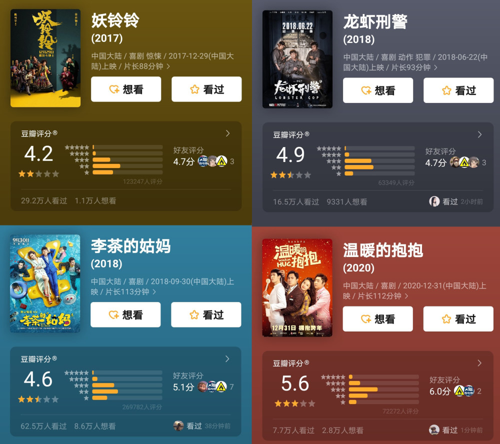 四部电影豆瓣评分