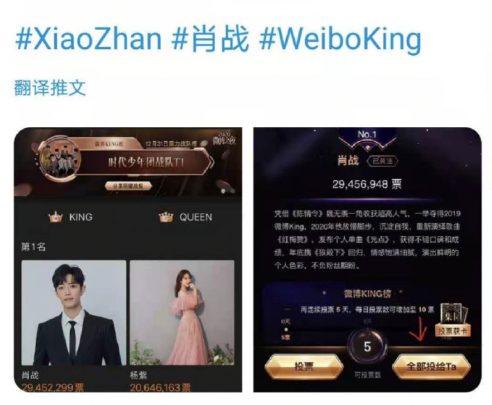 如今,微博之夜的活动也即将开始,其中肖战和杨紫连续两年蝉联,分别获得了微博KING和微博QUEEN,但是,此次微博之夜的投票当中,有浩繁的艺人粉丝放弃投票,肖战的粉丝也号召不组织打榜,但是最终投票结果公开,肖战却获得了第一。