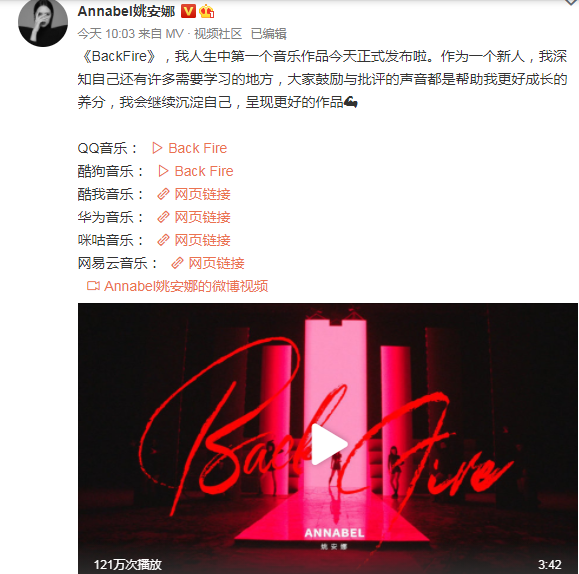 1月14日上午10点,她正式在小我微博上宣布了出道的消息