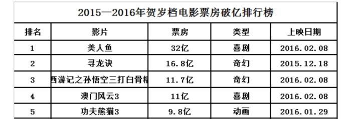 2015-2016贺岁档电影票房破亿排行榜