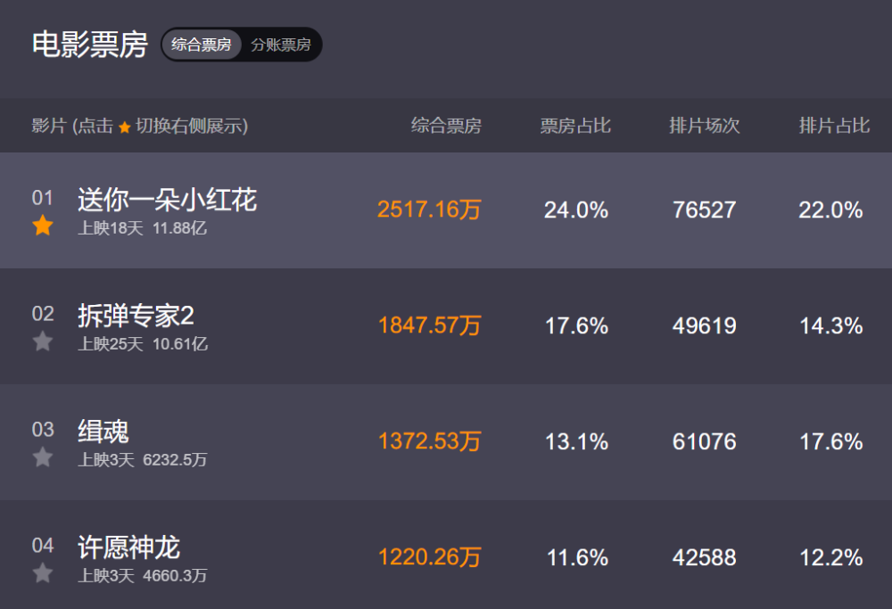 近半个月来,撑起电影市场票房的主力电影,当属易烊千玺的《送你一朵小红花》和刘德华的《拆弹专家2》,这两部电影均上映于12月底,目前总票房均突破10亿,是2021年开年以来,仅有的突破10亿的两部电影,看来刘德华和易烊千玺的票房号召力还是相当强的。