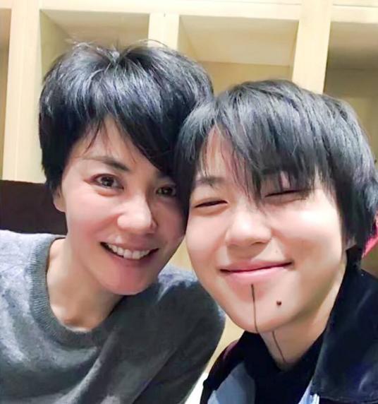 母女两个经常在一路合照,根本看不出两小我的年龄差距,这照片更像是一对姐妹呢。背后是一个空置的米色实木柜子,非常清新派的家居场景。