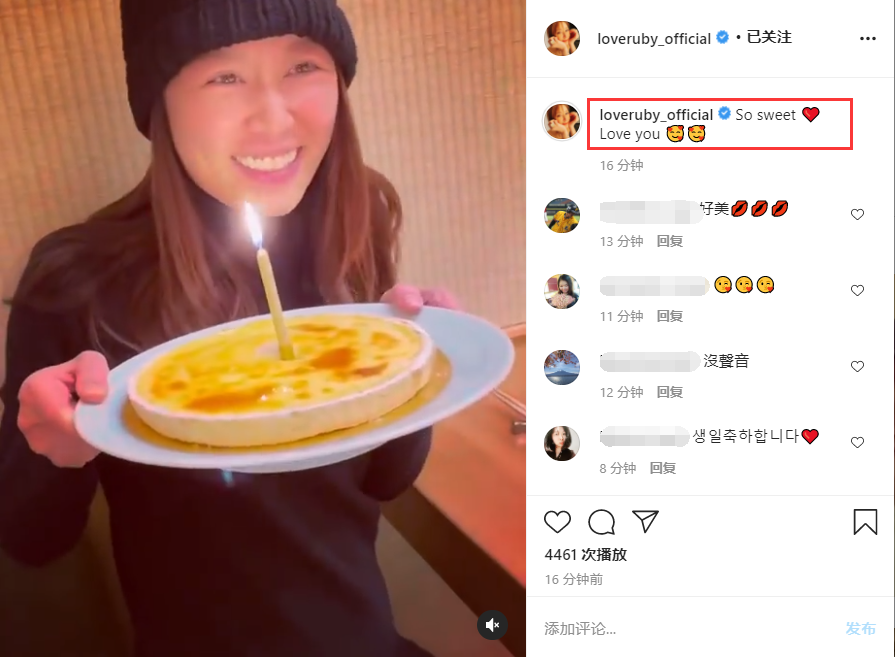 1月19日晚林心如更新视频动态,“so sweet! love you(好幸福,爱你们)”。