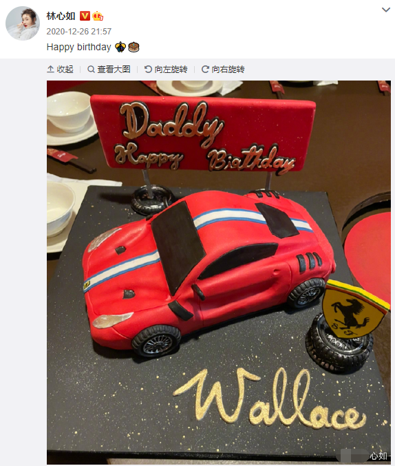 12月26日是霍建华生日,林心如晒出生日蛋糕照为老公送上祝福,蛋糕上以小海豚的口吻祝福爸爸生日快乐,豪车蛋糕深得皇上欢心,林心如为老公庆生费尽心血。