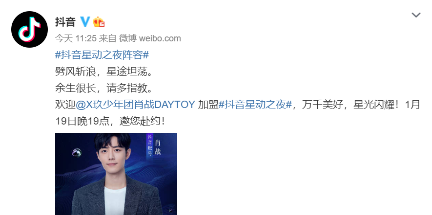 当然对于大众期待的肖战,也早已在之前被曝出参加星动之夜,官方也是在盛典开播前发出官宣海报。