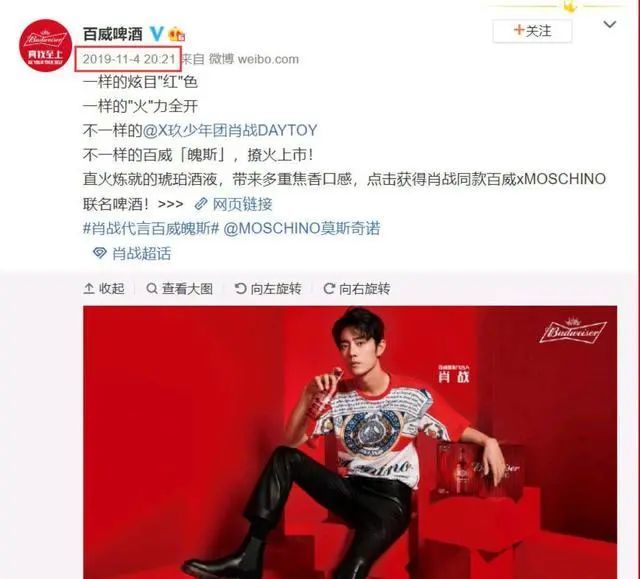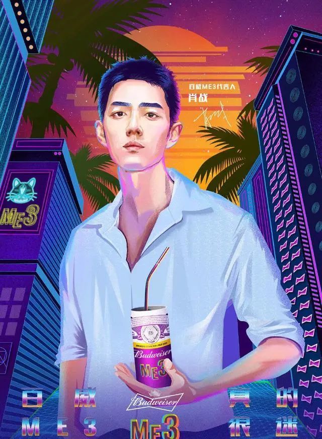 除了蒙牛乳业之外,肖战同样也是百威啤酒的双线代言人,既代言百威魄斯又是百威果啤。