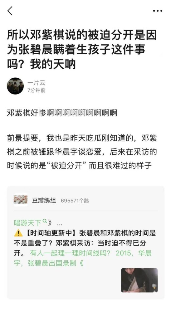 邓紫棋好惨!网传邓紫棋说的被迫分开是因为张碧晨瞒着生孩子的事