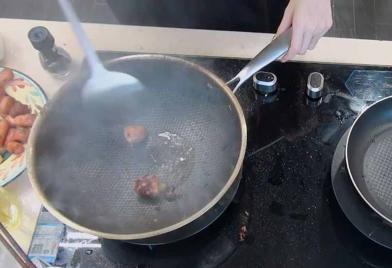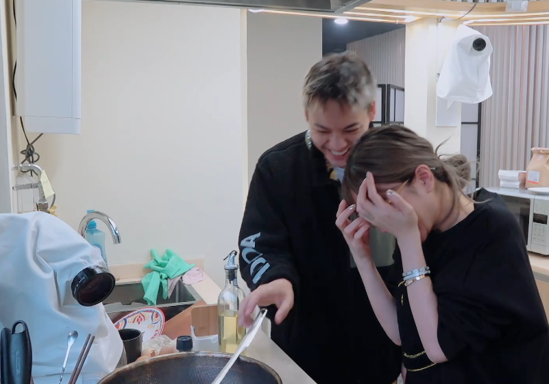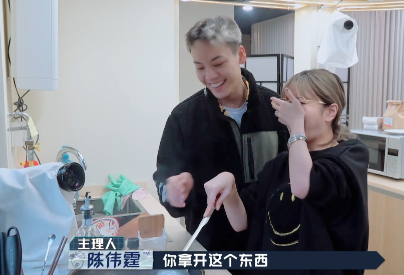 在最新一期节目中小编发现了许多关于陈伟霆和周扬青的小互动,当时的周扬青想要下厨为大家制作美味的香肠,但是非常可惜的是,厨艺不精的她将香肠煎焦了。就在这个时候陈伟霆来到她的身旁发现了这一事实,周扬青很欠好意思,一边苦笑一边和陈伟霆说着话。
