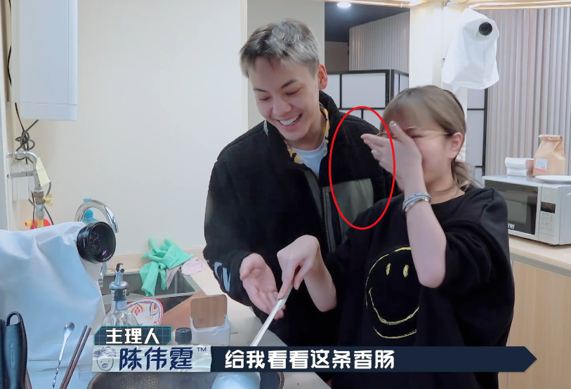 陈伟霆和周扬青非但没有保持距离,甚至有不少网友认为陈伟霆和周扬青之间的距离是情侣专属的距离,只有小情侣之间才会凑得这么近。当陈伟霆看到周扬青做的香肠后,也是不由得笑出声,他和周扬青更是笑成一团。