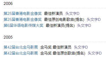 于是在2005年《文字头D》上映之后非常迅猛的揽获了六千多万票房,成为当年电影票房年度第六,除了高口碑和高票房之外,这部电影也让周杰伦拿下了第42届台湾电影金马奖最佳新人和第25届香港电影金像奖最佳新人两项影视大奖。
