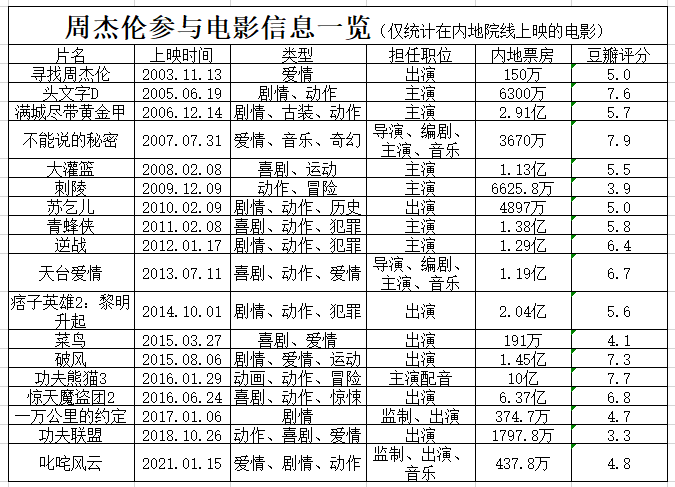 那么我们今天就来一路聊一聊,周杰伦参演过的那些让观众拍桌惊叹的爆款电影吧: