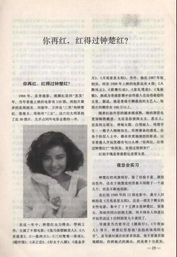 甚至不知什么时候起,江湖流传“最发发但是周润发,最红红但是钟楚红“。