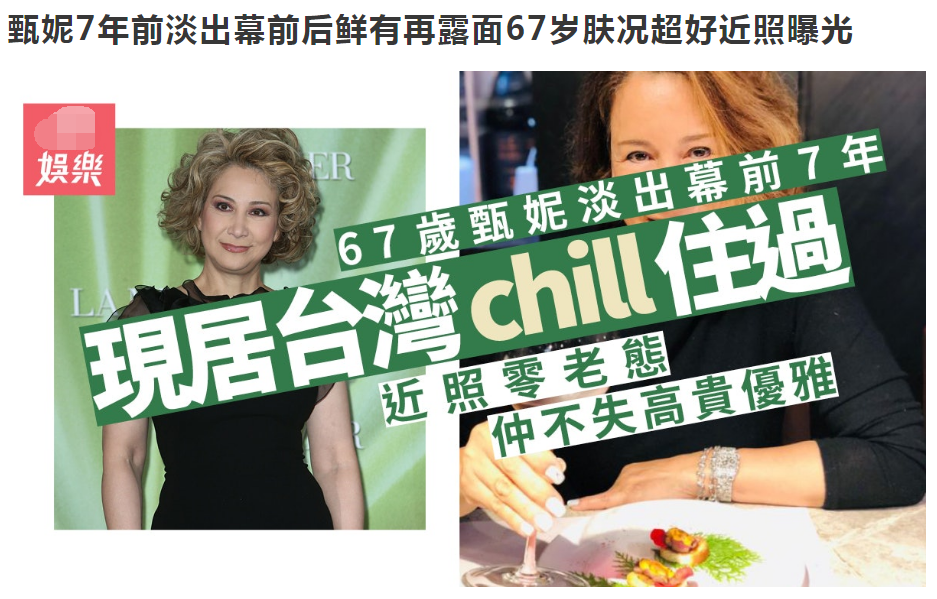 照片中,甄妮化着淡妆,皮肤状态几乎零瑕疵,她穿高领长袖一头棕色卷发,手上的钻石手腕闪闪发光,气质优雅打扮时尚,让人感觉不到时光飞逝,完全不像年逾六十七岁。