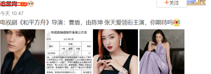 【网曝陈坤即将搭档张天爱,共同出演《和平方舟》】