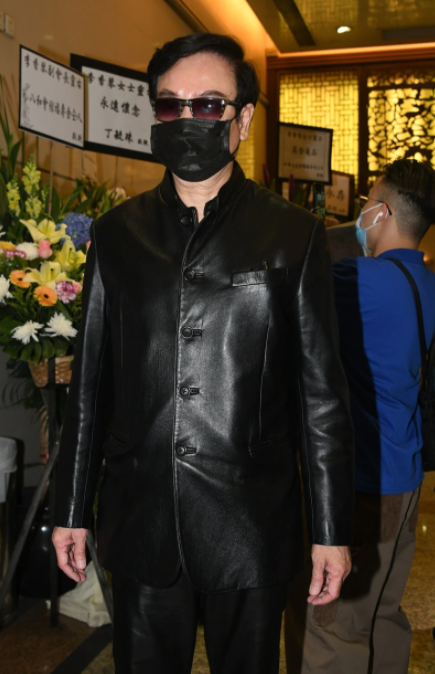 四哥谢贤现身灵堂,戴着墨镜也难掩悲痛,他说:“这么多人,没什么好说的”,以后便匆匆离场。