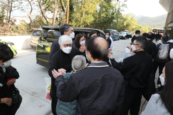 上午11点50分灵车抵达,琴姐干儿子陆永昌先下车打点,女儿萧紫筠捧着亡母遗照下车走入灵堂,家人紧随其后,而琴姐灵柩则由工作人员推入灵堂。
