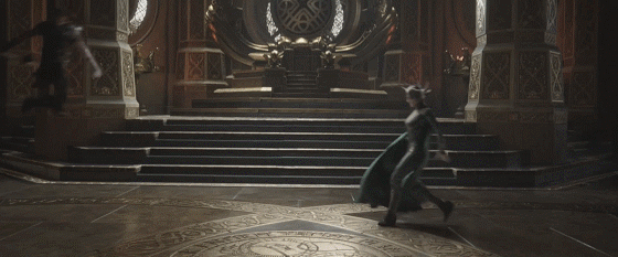 海拉作为雷神的姐姐,在《雷神3》中一出场就燃爆了了全场,可以说是一个妥妥的“场面人”,而灭霸可是作为目前漫威电影宇宙最强大的反派出场的,气势上一点也不输于海拉。