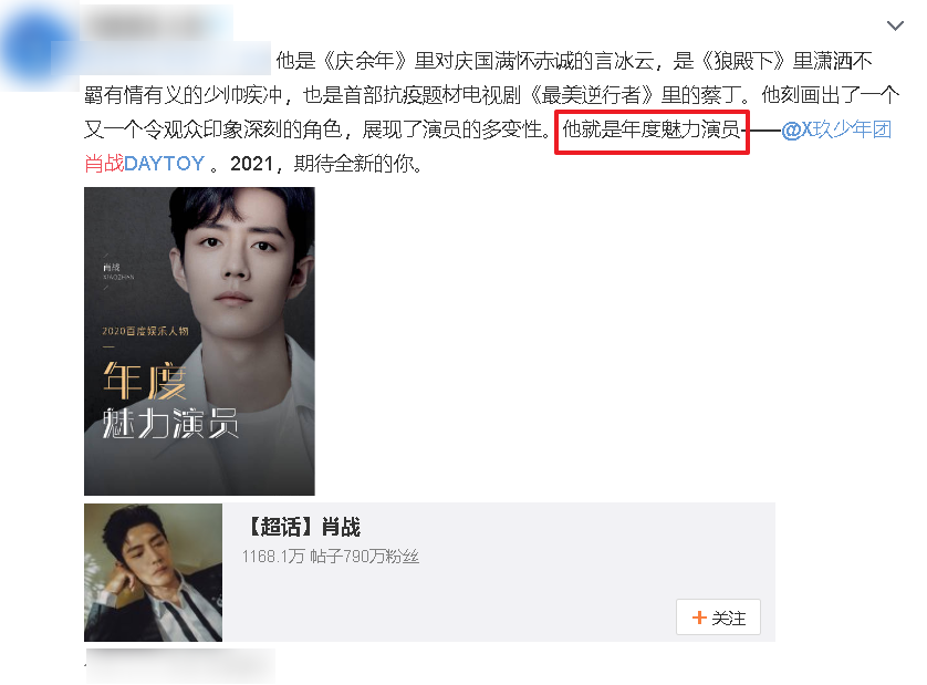 近期,肖战获得年度魅力演员的消息也传出来了,肖战的粉丝当然是非常的开心了。纷纷表示祝贺和夸赞。