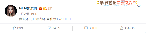 今日邓紫棋在微博上发文,我是否是以后都不消化妆啦?