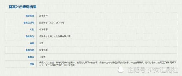 当然,也有电影因为郑爽而受益,它就是《非常孕事》,这部电影由知名导演宁浩担任编剧,备案单位为宁浩所成立的公司“坏猴子”。在经历郑爽DY一事以后,想来这个题材的电影必然会让更多的人感兴趣。