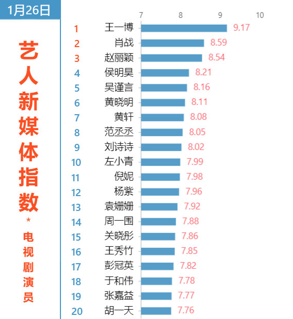 当下“最受欢迎”艺人:侯明昊第4,肖战第3,榜首一个多月没换人
