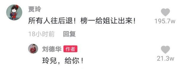 当贾玲知道刘德华开设小我账号的消息以后,直接关注了刘德华,并且还在刘德华视频底下的评论区喊话,自己要成为刘德华榜单的一姐。